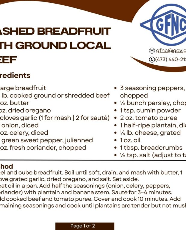 Blog Author GFNCAdmin Posted on November 4, 2025 Pumpkin and Coconut Flan ... Author GFNCAdmin Posted on October 31, 2025October 31, 2025 Baked Plantain, Green Banana & Salt Fish Balls ... Author GFNCAdmin Posted on October 31, 2025 Turmeric Chicken with Nepal (Cactus) ... Author GFNCAdmin Posted on October 24, 2025 Pumpkin Bars ... Author GFNCAdmin Posted on October 24, 2025October 24, 2025 Tropical Banana and Pineapple Cake (Mildly Sweetened with Honey) ... Author GFNCAdmin Posted on September 30, 2025 Mini Breadfruit Pizza ... Author GFNCAdmin Posted on September 15, 2025 Mashed Breadfruit with Ground Local Beef ... Author GFNCAdmin Posted on September 9, 2025September 9, 2025 Christophene Pudding ... Author GFNCAdmin Posted on September 9, 2025 Carambola Chicken ...