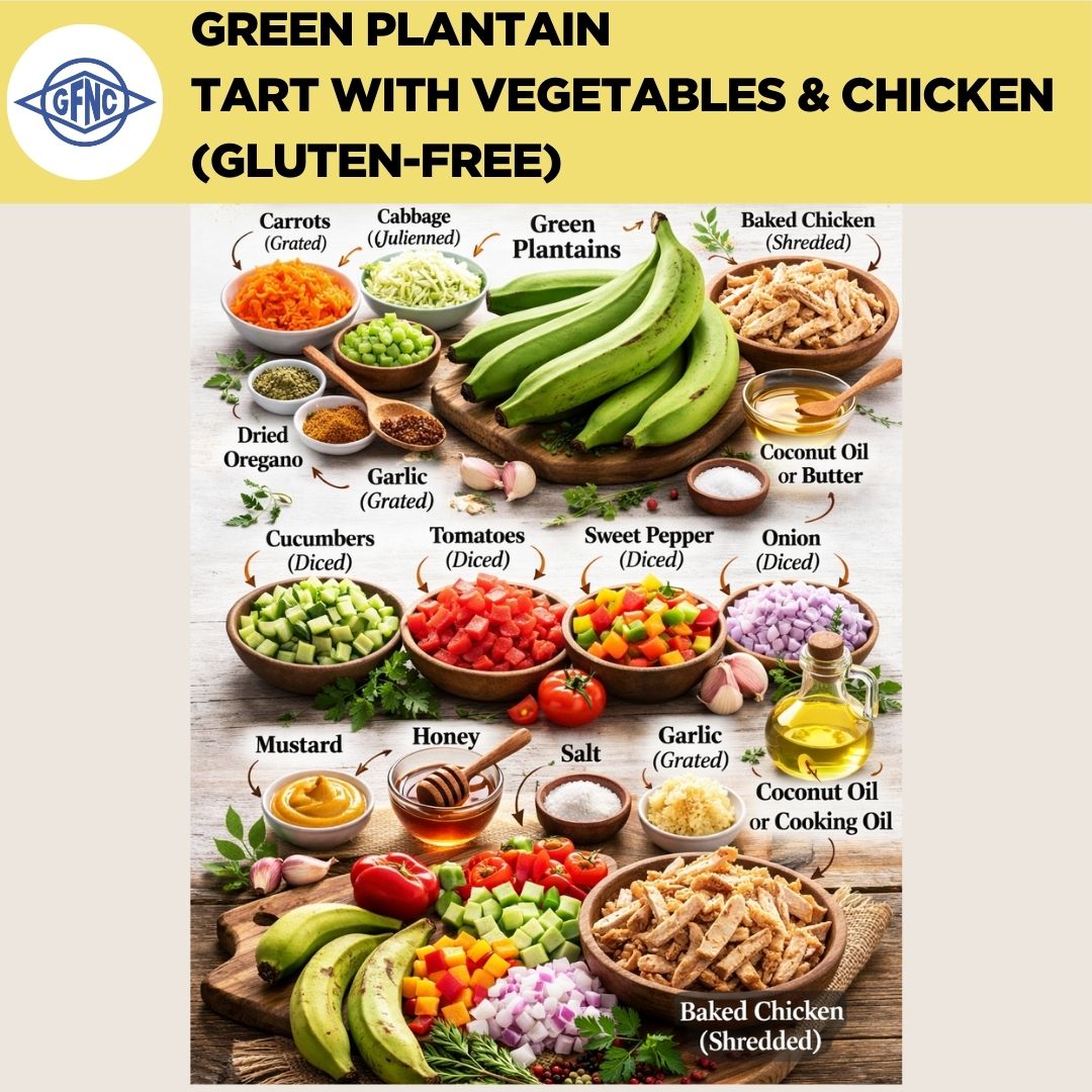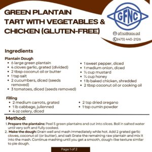 HomeGrenada Food and Nutrition Council   : :   Articles   : :   Green Plantain Tart with Vegetables & Chicken (Gluten-Free)