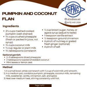 HomeGrenada Food and Nutrition Council   : :   Articles   : :   Pumpkin and Coconut Flan