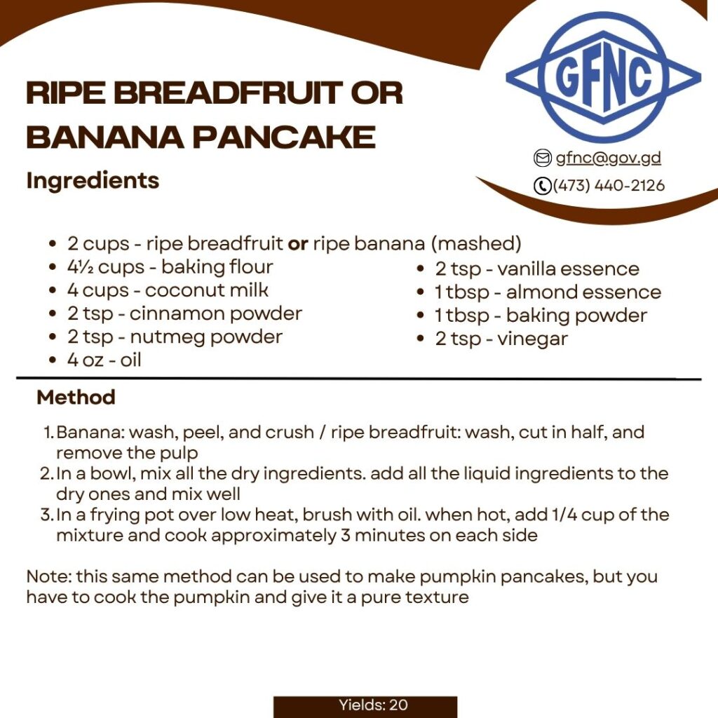 HomeGrenada Food and Nutrition Council   : :   Uncategorized   : :   RIPE BREADFRUIT OR BANANA PANCAKE